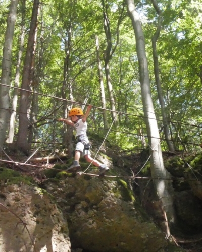 Am 10.08.2024 hat die Jungenarbeit Ragazzi des KJR Forchheim erfolgreich die Tagesaktion Vater-Kind-Abenteuertag durchgeführt. Mit einer Teilnehmergruppe von 13 Personen (5 Väter plus Nachwuchs) war das Ziel der Klettersteig Höhenglücksteig im Hirschbachtal. Entsprechend ausgerüstet und unter fachkundiger Führung begab sich die Gruppe bei hochsommerlichem Wetter vom Wanderparkplatz Neutras zum Einstieg der Steiganlage.