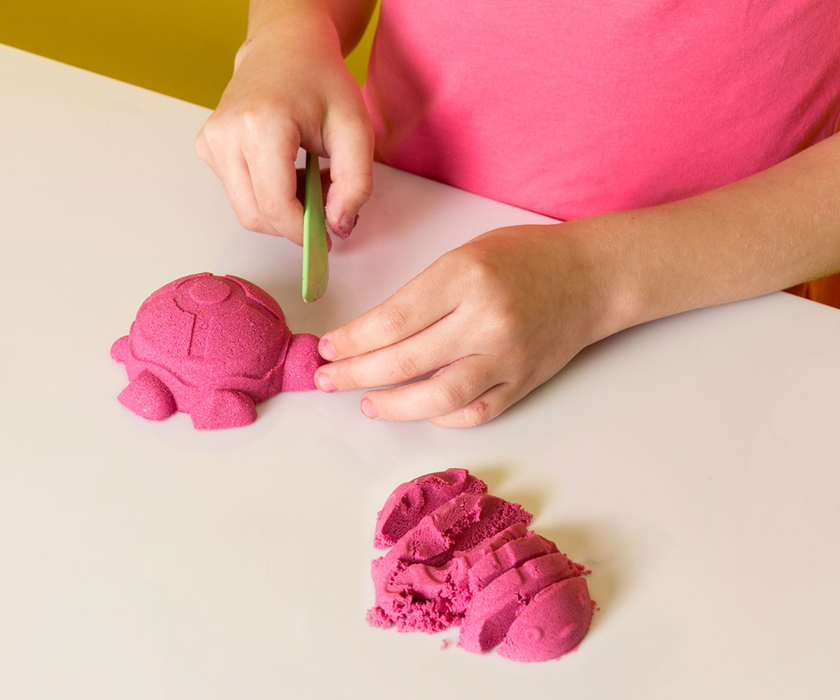 In einer Schüssel vermengt ihr die Zutaten, bis sie gut vermischt sind. Auf einer Unterlage (Plane) kann der Spielspaß im Zimmer oder im Garten beginnen.