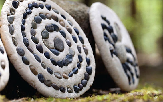 Euer Salzteig ist nun fertig und ihr könnt das Mosaik legen. Dazu legt ihr euer Mosaik auf den Teig und wenn ihr euch für ein Muster entschieden habt drückt ihr die Steine oder Muscheln in den Teig.