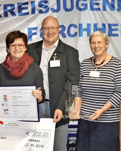 In der Vollversammlung des Kreisjugendrings (KJR) Forchheim wurde die Auszeichnung „Ehrenamtlicher des Jahres 2016“ an vier Preisträger verliehen. Den ersten Platz belegte Marion Knauer vom SV Buckenhofen. Seit über 30 Jahren ist sie als Übungsleiterin und in leitenden Funktionen ins Vereinsleben eingebunden. Vielen ist sie als Initiatorin der Zirkuswerkstatt bekannt mit seinen großen Zirkusvorstellungen. Vorsitzender Carl Schell überreichte in Vertretung der Vereinigten Raiffeisenbanken einen Scheck in Höhe von 500 Euro.