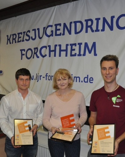 Auch 2018 hat der Kreisjugendring Forchheim wieder herausragendes Engagement in der Jugendarbeit mit der Auszeichnung "Ehrenamtliche/r des Jahres" gewürdigt. Auf der Herbstvollversammlung konnten sich vier Preisträger/innen über Pokale, Urkunden und einen Geldpreis für den vorschlagenden Verein freuen. Der 1. Platz ging an Johannes Schleicher von der DJK-SC Oesdorf.