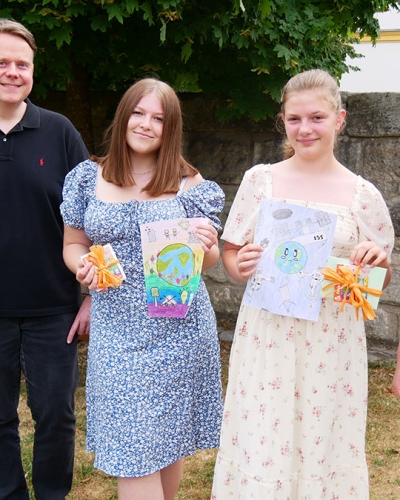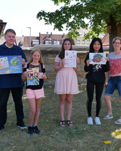 Den diesjährigen Malwettbewerb des Ferienpasses zum Thema "Bunter Landkreis Forchheim" hat bei über 200 Einsendungen Max Hoh gewonnen. Damit ziert sein Bild in diesem Jahr den Ferienpass. Die Plätze 2 und 3 haben Laura Grüner und Kim Suchada Hoch belegt. Auch die Gewinnerin der Online-Umfrage zu den Freizeiten und Aktionen des KJR, Emila Dorn, konnte ihren Preis entgegennehmen.