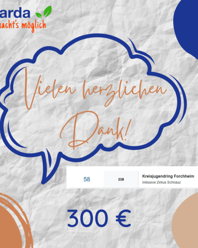 Wir möchten uns ganz herzlich bei Ihnen und euch für die Unterstützung in den letzten Wochen bedanken! Wir sagen D A N K E für 338 Stimmen, die im November beim Wettbewerb der Sparda Bank für unser inklusives Zirkusprojekt abgegeben wurden. Ohne Sie und euch wäre das nicht möglich gewesen. Durch die tolle Unterstützung sind wir auf Platz 58 von 320 gelandet. Das bedeutet, dass wir eine Spende in Höhe von 300 € für unseren inklusiven Zirkus Schnauz 2024 bekommen. Diese soll u.a. für die Anschaffung neuer Spiel- und Bastelgeräte genutzt werden.