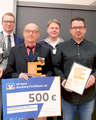 Im Rahmen einer Feierstunde hat der Kreisjugendring Forchheim wieder ehrenamtliches Engagement ausgezeichnet. „Ehrenamtlicher des Jahres 2022“ wurde Stefan Pieger von der DJK-FC Schlaifhausen, der 2. Preis ging an Sabine Postler-Götz vom Gesangverein Cäcilia Kirchehrenbach, der 3. Preis an Katharina Mundo von der Wasserwacht Forchheim. Der amtierende KJR-Vorsitzender Thomas Wilfling, der die Verleihung vornahm, hob den außerordentlichen Einsatz aller Preisträger hervor, der über das normale Maß hinausgeht. Die Geehrten konnten sich über Geldpreise freuen, die vom Schirmherren der Auszeichnung Landrat Dr. Hermann Ulm sowie dem Sponsor, der Volksbank Forchheim vertreten durch Filialleiter Felix Fietzeck, überreicht wurden.